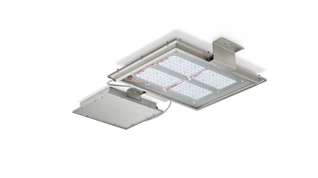 BGB307 | FlowStar GEN2 MEDIUM, LED500 | LED module 50000 lm, LED, 300 W, Power supply unit with DALI interface, Distribution symmetrical medium 11, Glass flat with frame, 101° x 158°, DALI, Baseplate